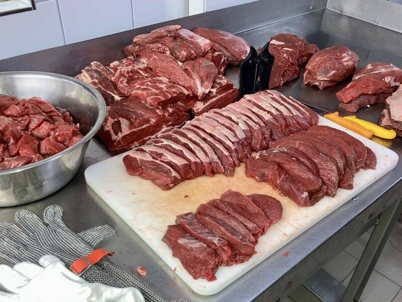 Wenn ein Rind mit 2,5 - 3 Jahren bei unserem Hofschlachter in Detern geschlachtet wird, hängt es dort noch knapp 2 Wochen ab, bevor wir es bei uns auf dem Hof selbst zerlegen.