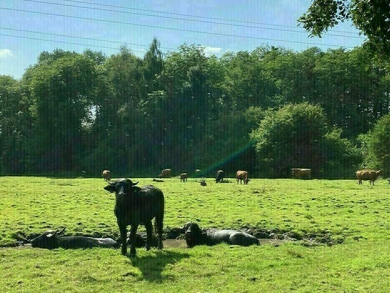 Unsere Wasserbüffel verbringen die meiste Zeit des Jahres auf unseren extensiv genutzten Weiden. Im Winter werden sie im Strohstall mit Heu zugefüttert. Das spiegelt sich auch im Geschmack des Fleisches wider, welches einen angenehm markanten Eigengeschmack besitzt, der manchen an Wild erinnert. Das Fleisch hängt 14 Tage (Dry Aged) bei unserem Hofschlachter ab und wird dann von uns zerlegt.